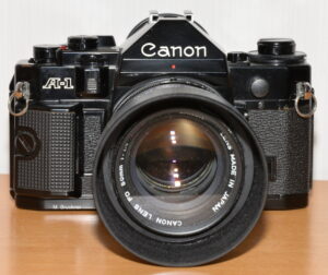 Als Spitzenmodell der beliebten A Serie bot Canon ab 1978 die A-1 an. Besondere Bedeutung erlangte die A-1 dadurch, dass sie als erste über eine Vollautomatik verfügte, bei der Blendenwert und Verschlusszeit automatisch vom Mikroprozessor der Kamera bestimmt werden. Des Weiteren war sie die erste Kamera, bei der Verschlusszeit und Blendenwert mittels roter 7-Segment-LEDs im Sucherbereich angezeigt werden. Die Canon A-1 ist ein robustes Arbeitstier mit einem einstellbaren Zeitenbereich von 30sec bis 1/1000sec. Dank der problemlosen Automatikfunktionen und des exzellenten Suchers ist das Fotografieren mit der A1 ein pures Vergnügen.